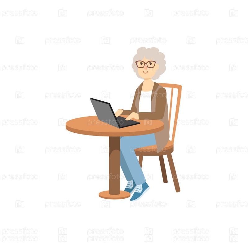 Старая женщина с ноутбуком