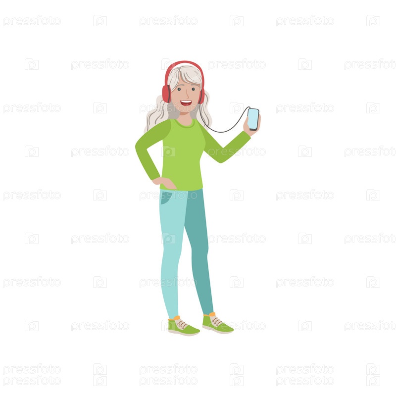 Старая женщина слушает музыку