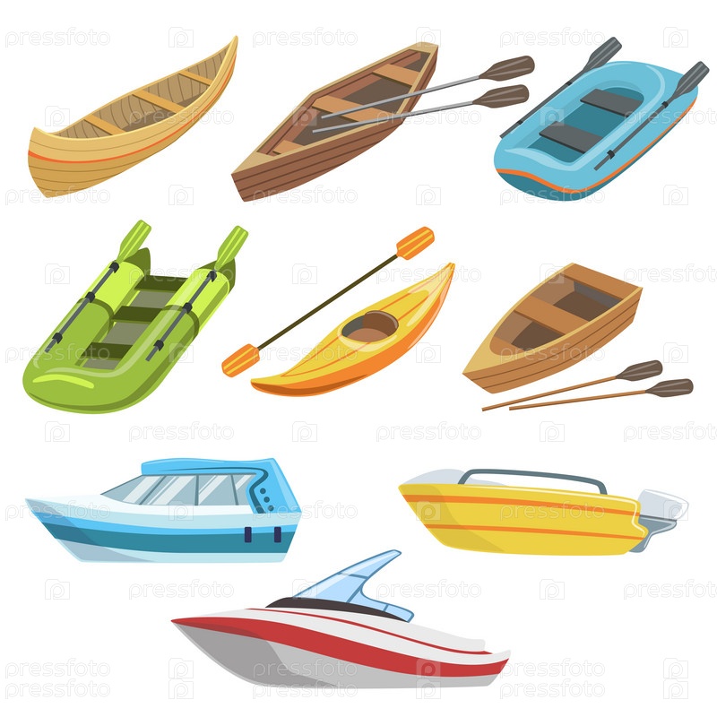 Различные типы лодок красочный набор
