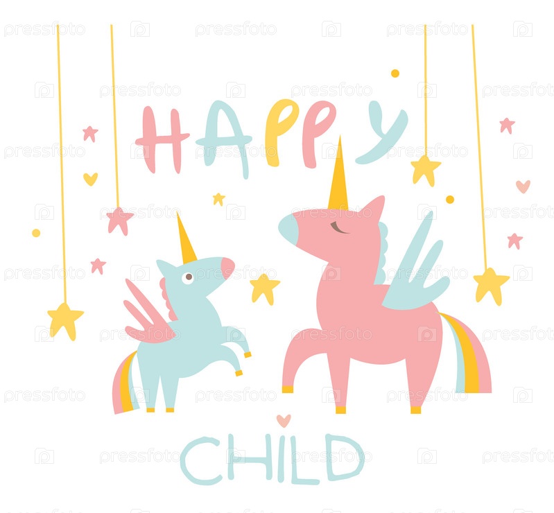 Милый маленький единорог с мамой