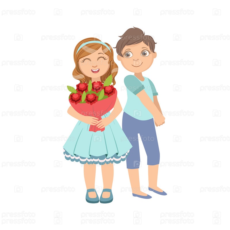 Девушка с букетом и застенчивый мальчик