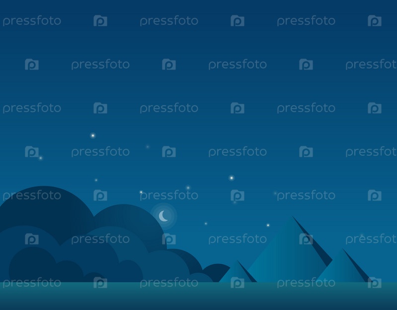 Пейзаж пустыни и пирамиды в ночное время