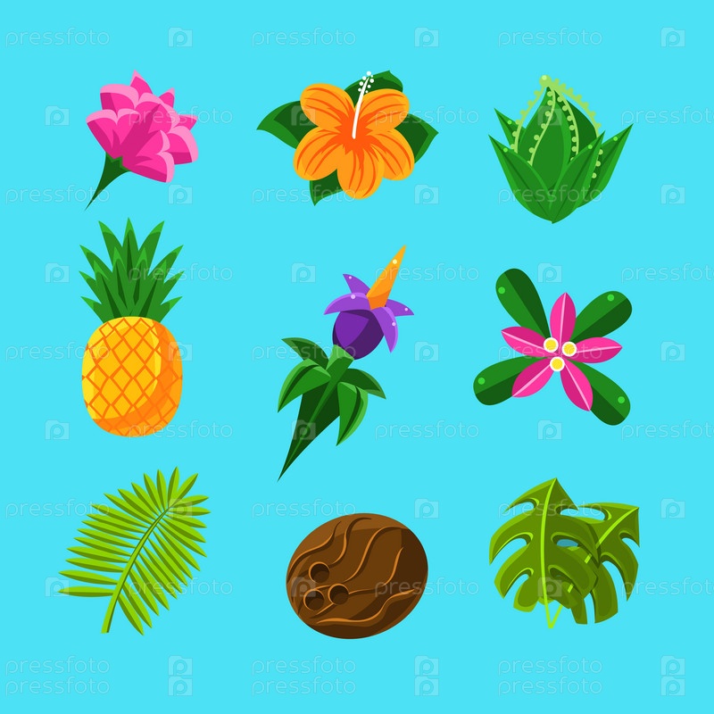 Тропические растения и фрукты набор