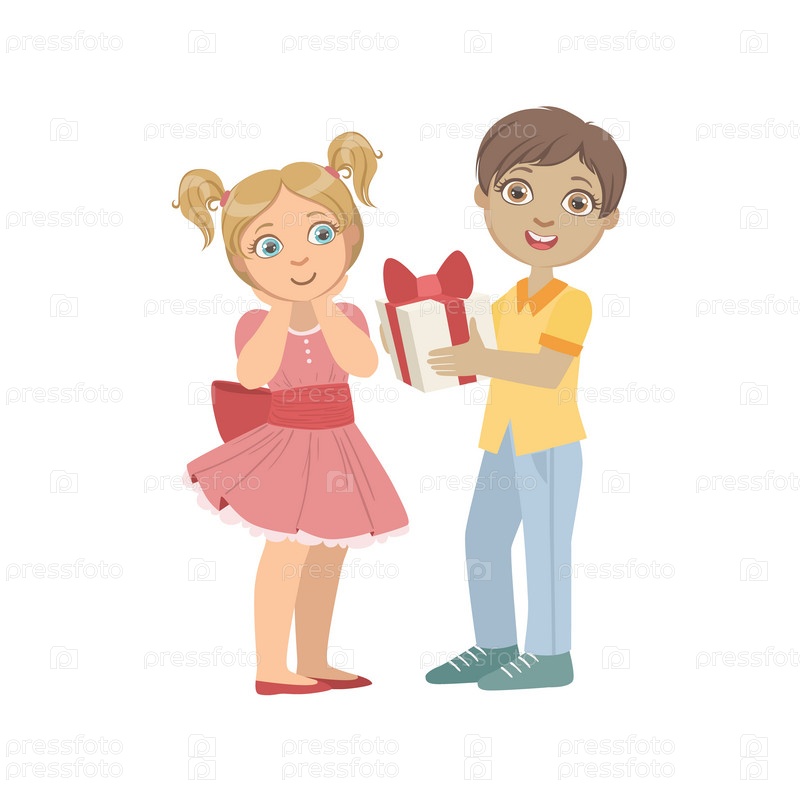 Мальчик дарит подарок девочке