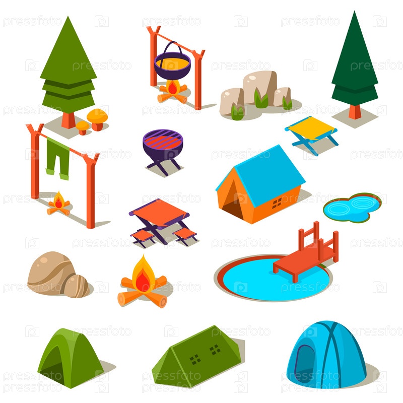 Кемпинг элементы для ландшафтного дизайна