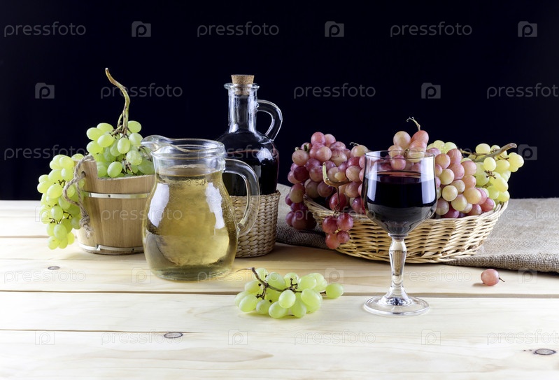 Зеленый и розовый виноград и вино