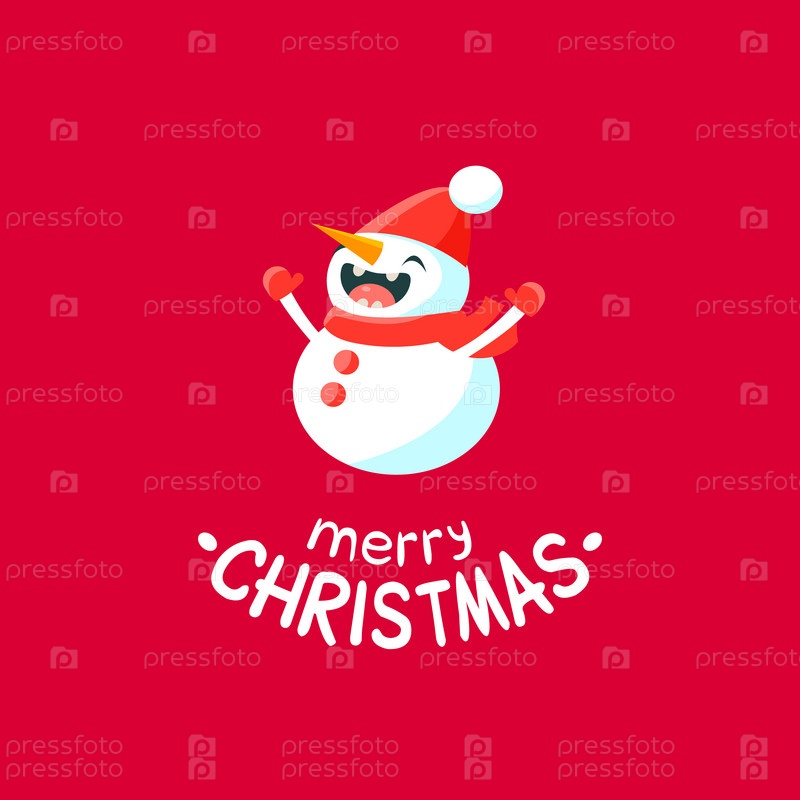 Веселая Рождественская открытка со снеговиком