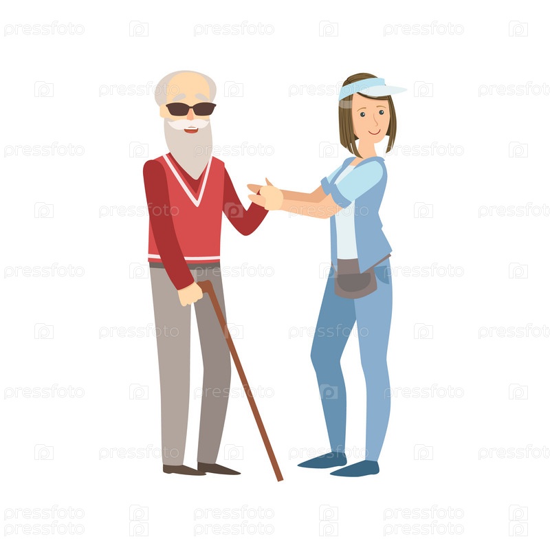 Волонтер, помогая слепому старику