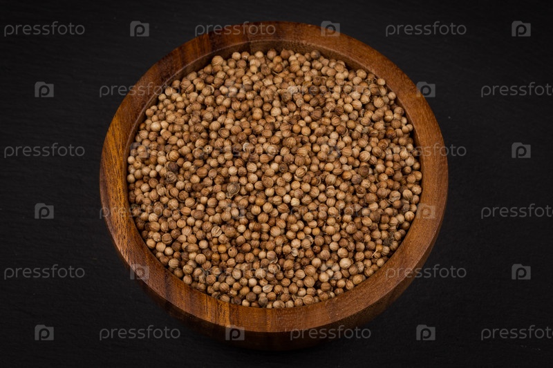 Семена кориандра в маленькой деревянной миске