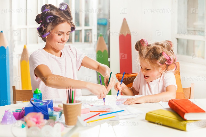 Мать и дочь рисуют