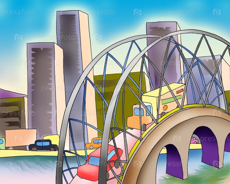 Мост через реку в большом городе