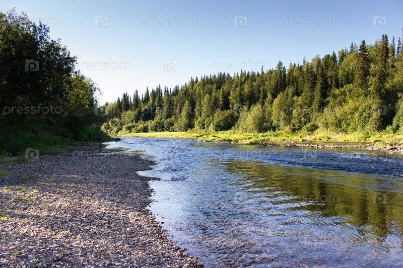 Летний пейзаж с рекой и лесом