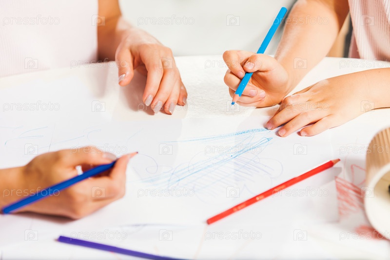 Молодая мать и дочь рисуют