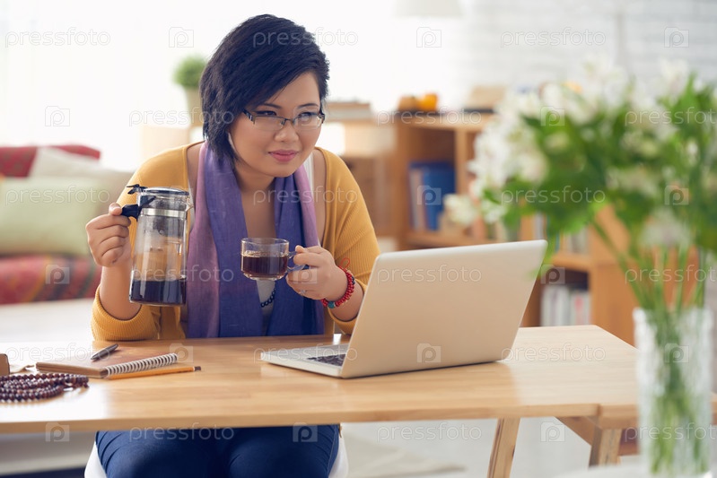 Женщина наслаждается чашечкой кофе