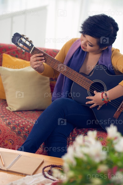 Женщина играет на гитаре