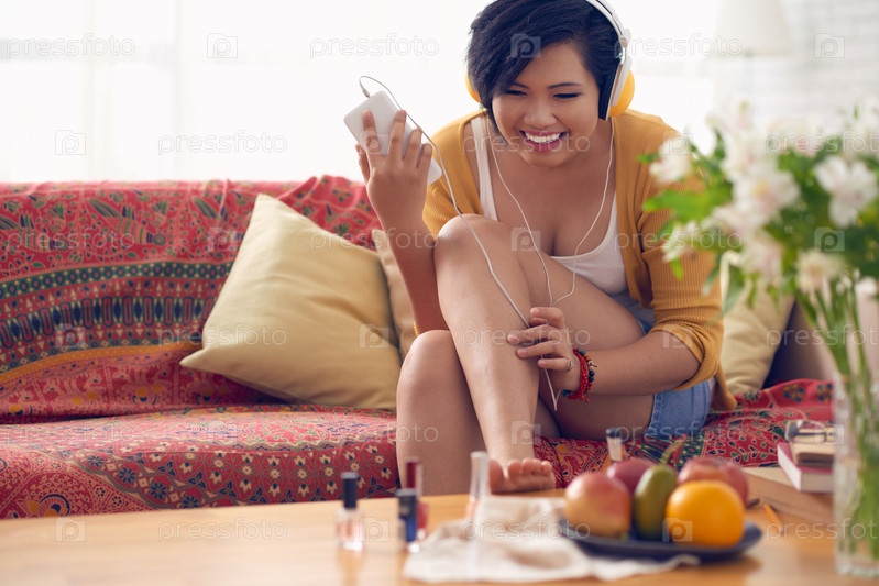 Девушка делает педикюр