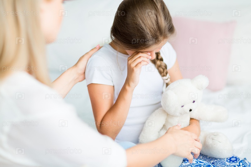 Мать успокаивает дочку