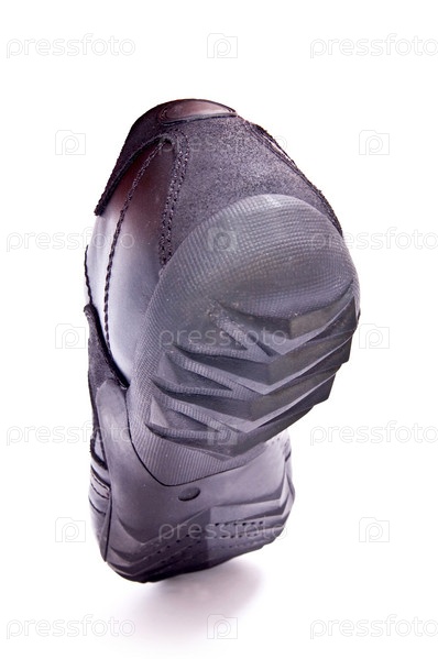Черная обувь изолирована на белом фоне.Горизонтальный снимок