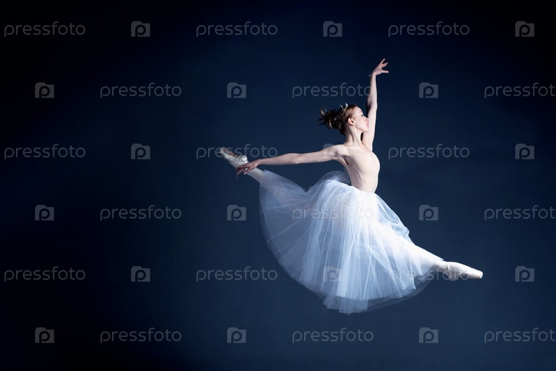 Молодая балерина танцует в темной фотостудии