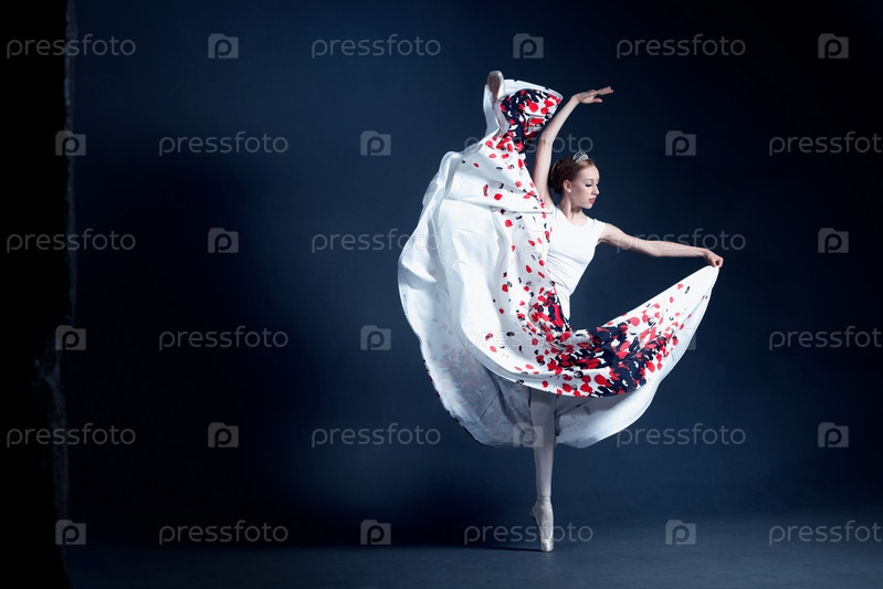 Молодая балерина танцует в темной фотостудии