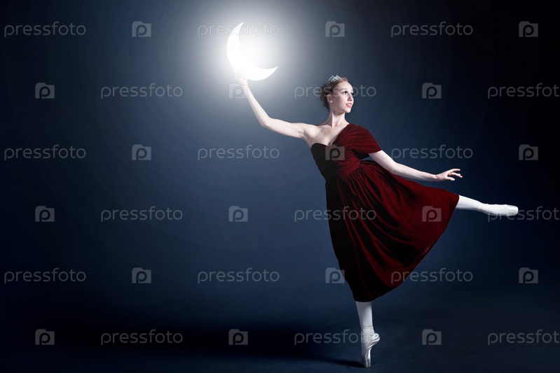 Молодая балерина танцует в темной фотостудии