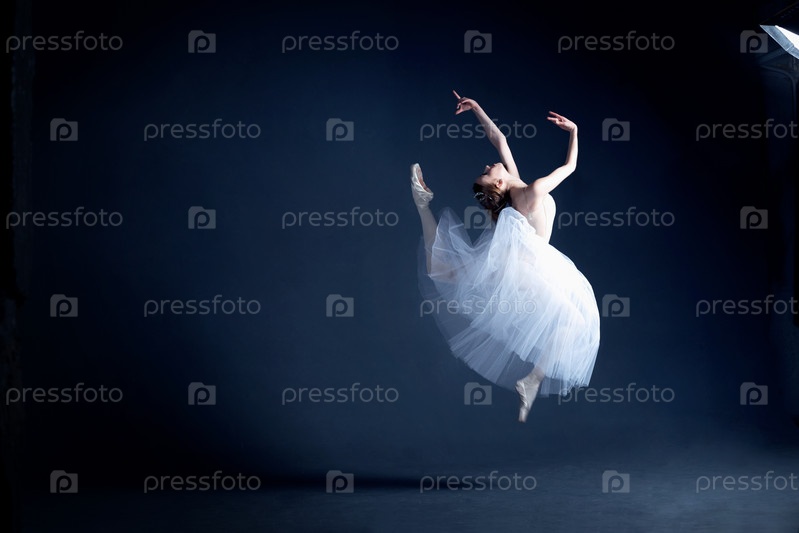 Молодая балерина танцует в темной фотостудии