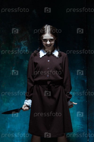 Девушка-убийца в школьной форме с ножом