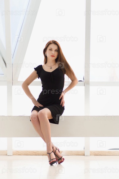 Портрет рыжеволосой девушки, сидящей на фоне окна