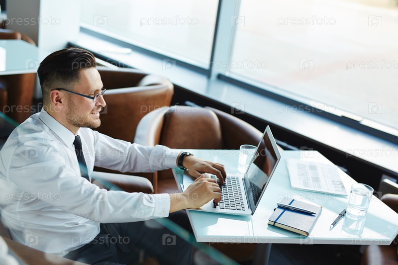 Бизнесмен работает за ноутбуком