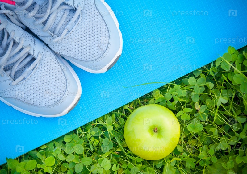 Спортивная обувь и яблоко