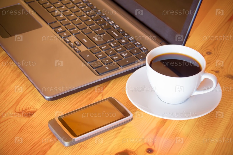 Смартфон, ноутбук и кофе