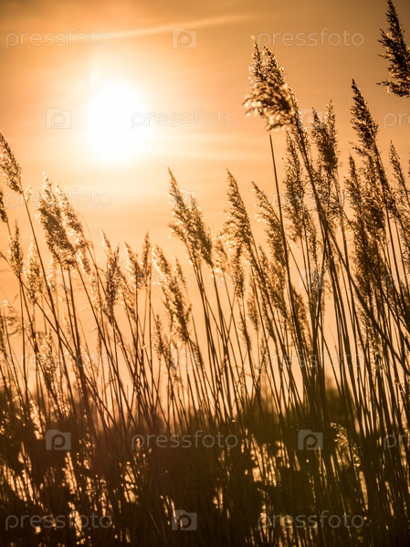 Трава в поле на закате
