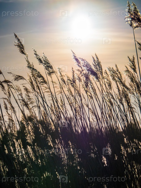 Трава в поле на закате