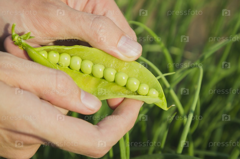Стручок гороха в руках