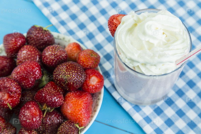 Клубничный молочный коктейль со взбитыми сливками