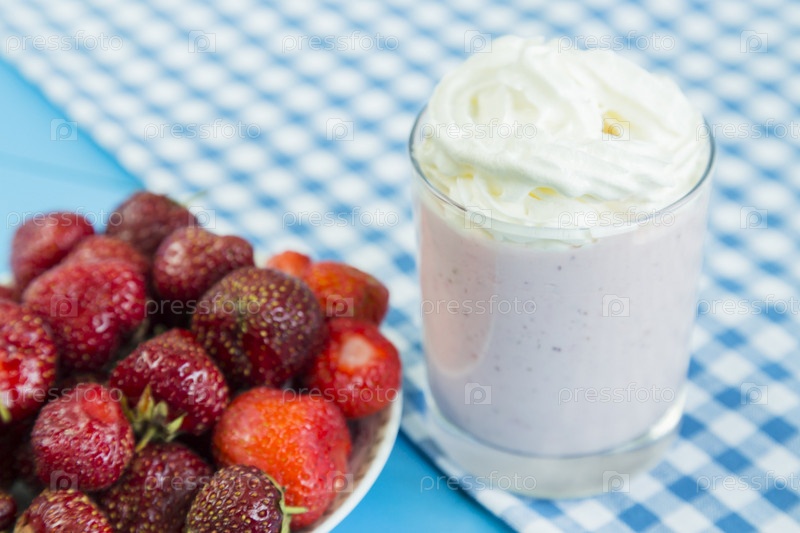 Клубничный молочный коктейль со взбитыми сливками