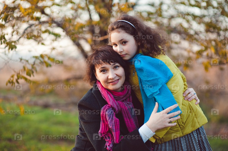 Мать и дочь в осеннем парке
