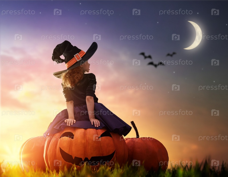 Маленькая ведьма на тыкве