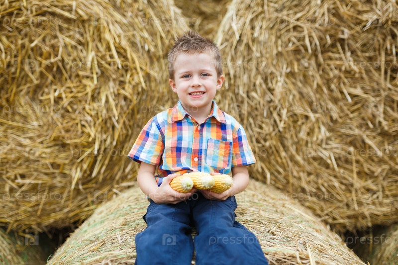 Маленький мальчик на стеке соломы