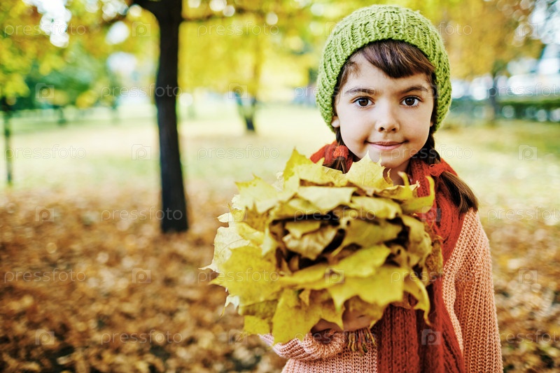 Маленькая девочка с кленовыми листьями