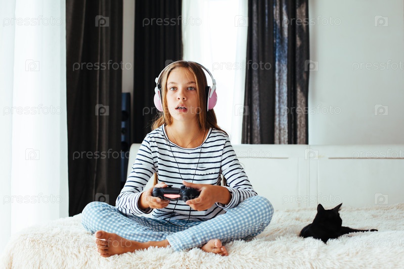 Девочка играет в видео игры