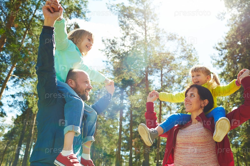 Счастливый семейный поход в лес