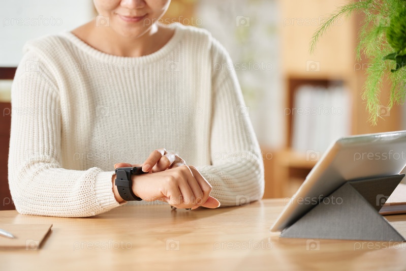 Девушка смотрит на часы