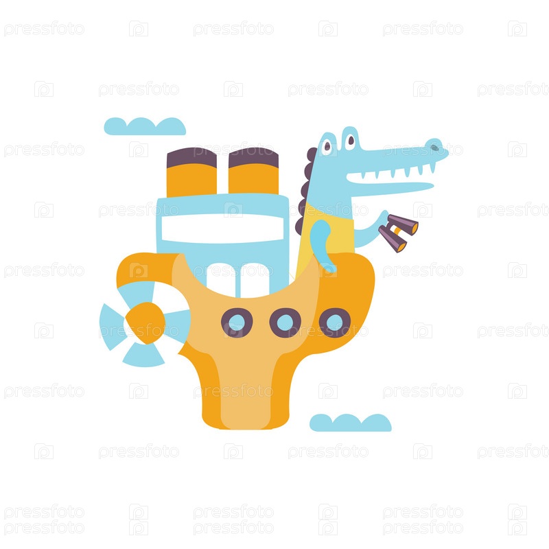 Крокодил на корабле с биноклем