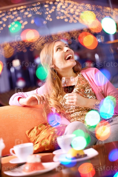 Счастливая девушка с бокалом вина