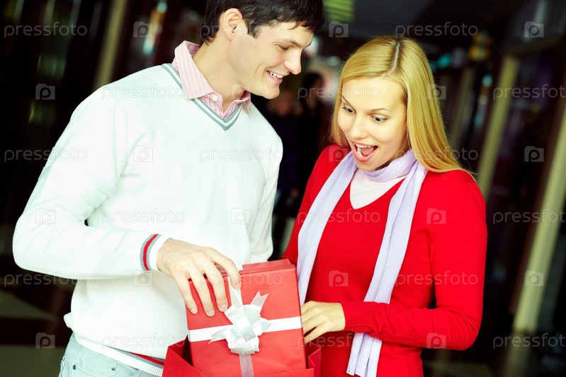 Счастливая девушка получает подарок