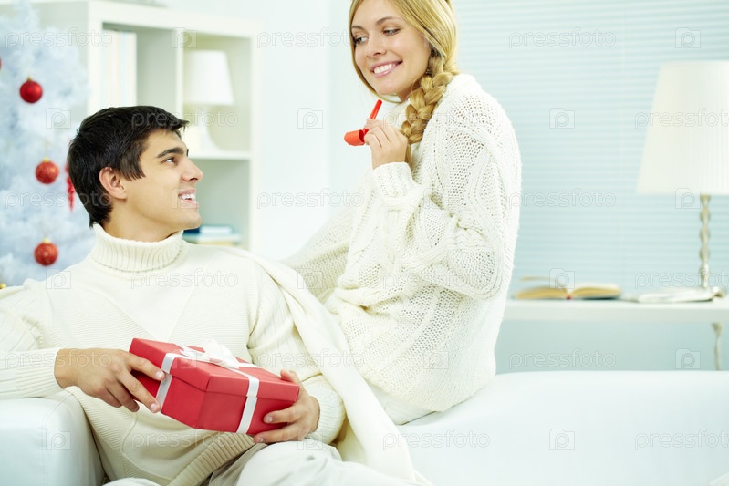 Счастливая пара с рождественским подарком