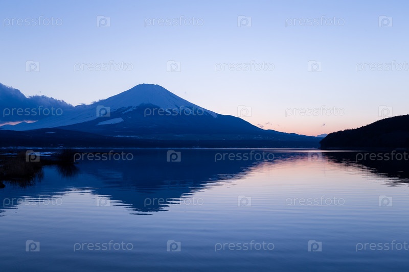 Гора Фудзи и озеро на закате