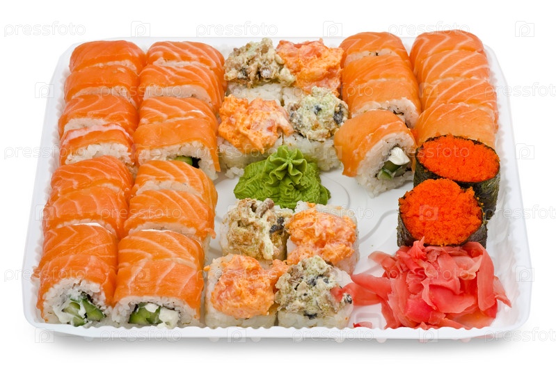 Суши в контейнере на белом фоне