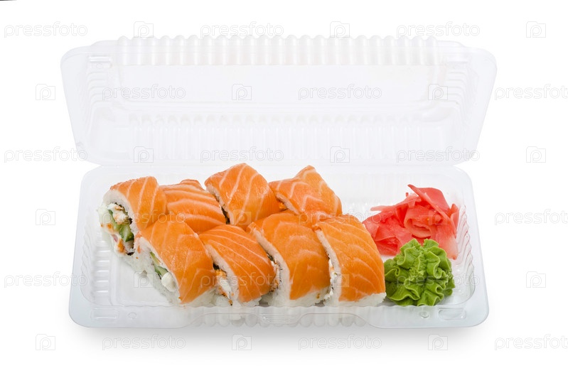 Суши в контейнере на белом фоне